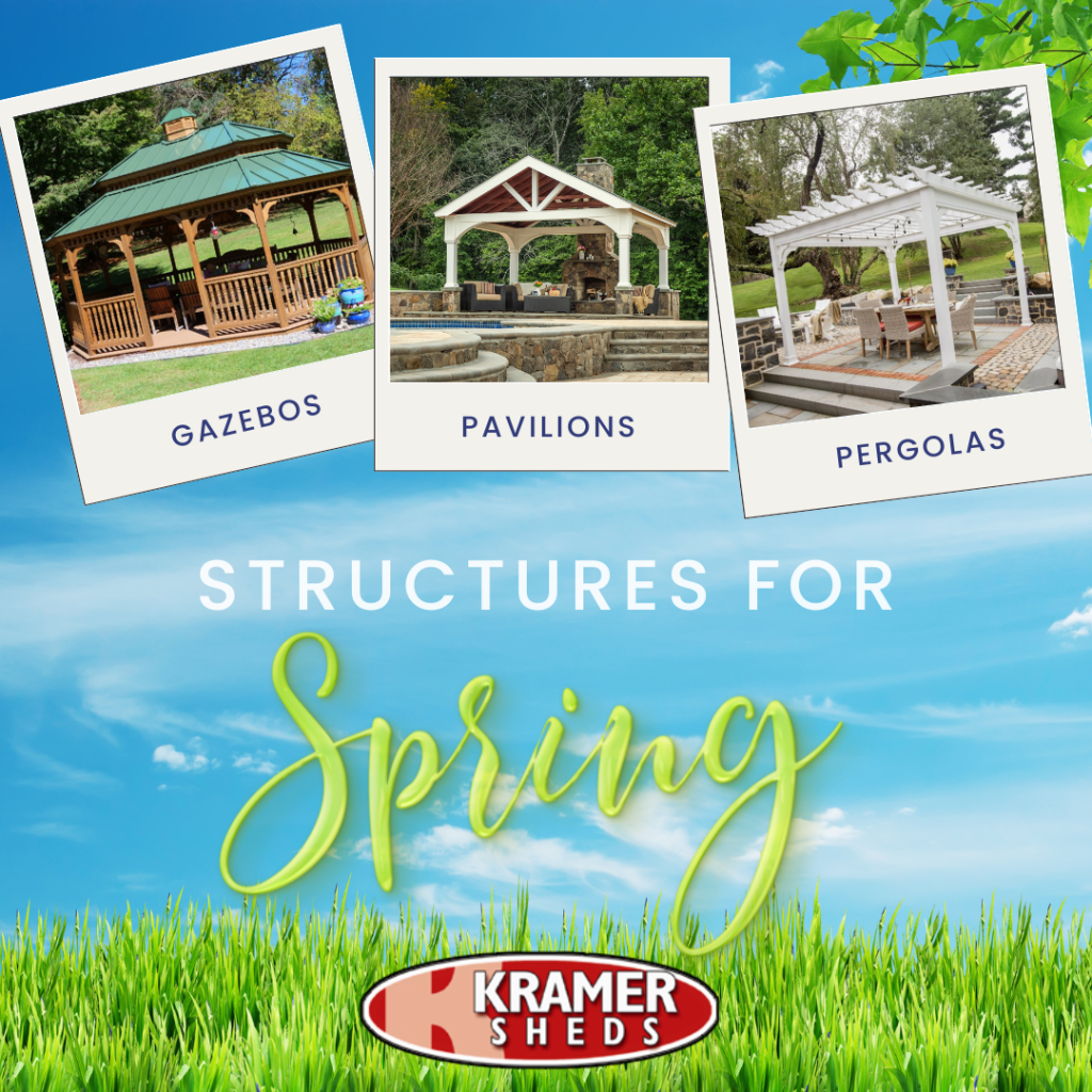 Enjoy your backyard in style with one of our Gazebos, Pavilion, or Pergola options! We have all different sizes and styles available for you to choose from! Begin browsing at www.KramerSheds.com