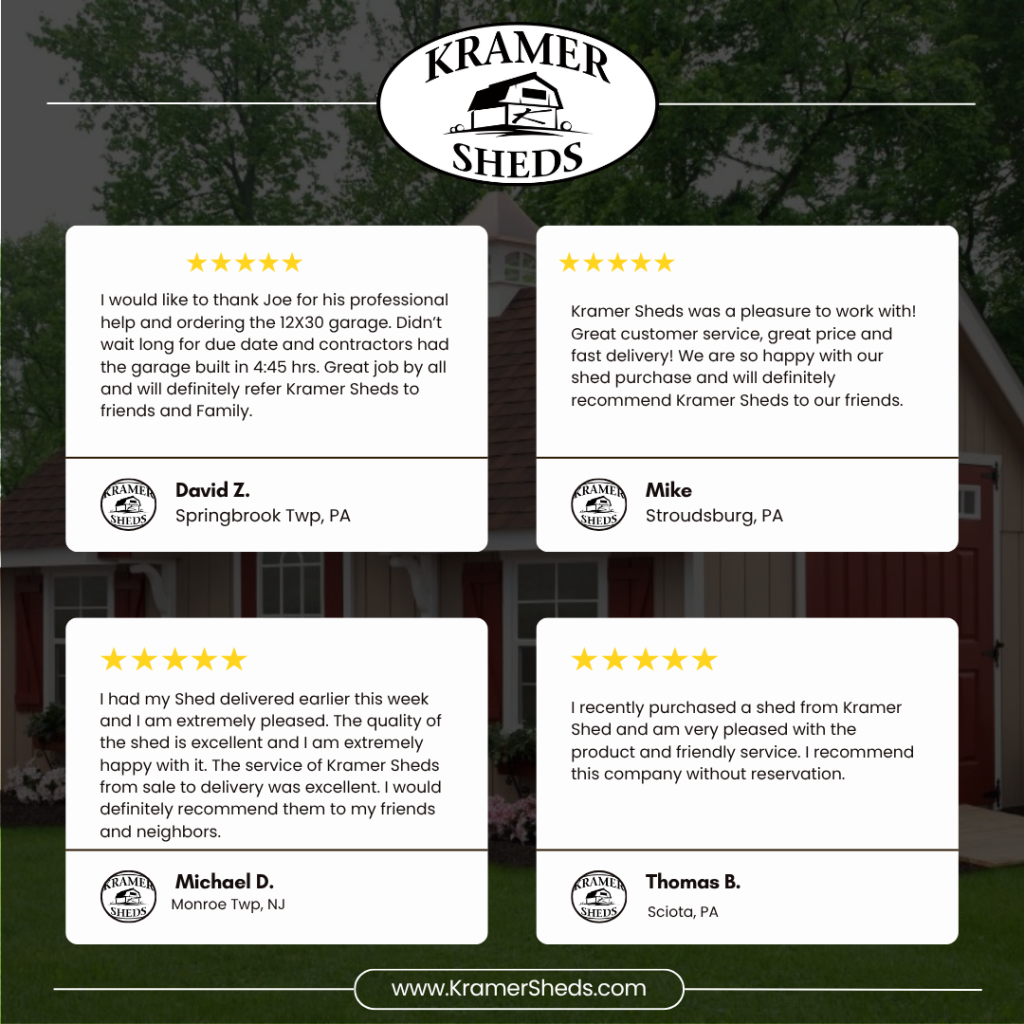 If you would like to share your experience you had with us, please visit https://www.kramersheds.com/testimonials/